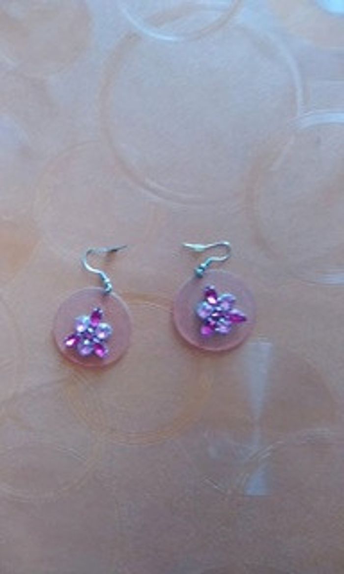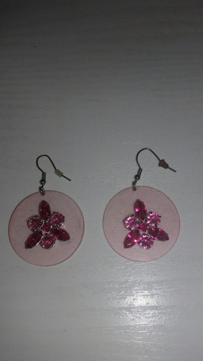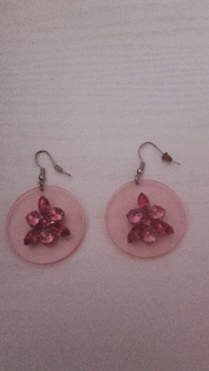 Boucles d'oreilles roses avec pierres brillantes roses au centre En très bon état #bijouxeilsel0
