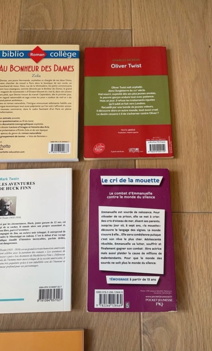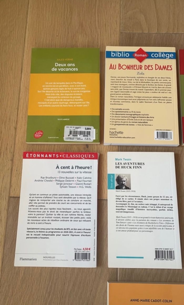 - « Deux ans de vacances », de Jules Verne, texte abrégé - 3€ - « Au bonheur des dames » de Zola - 3€ - « Oliver Twist » de Charles Dickens, texte abrégé - 2€ - « À cent à l’heure ! 13 nouvelles sur la vitesse » - 2€ - « Les aventures de Huck Finn » de Mark Twain, texte abrégé - 2€ - « Le cri de la mouette » d’Emmanuelle Laborit - 2€ - « Yvain, le Chevalier au Lion » d’Anne-Marie Cadot-Colin, texte intégral - 2,50€