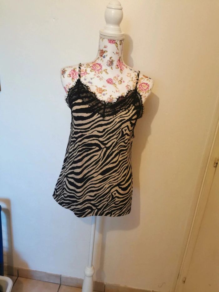 Débardeur motif léopard Taille: 38/40 Dentelle niveau poitrine Bretelles réglables Jamais porter