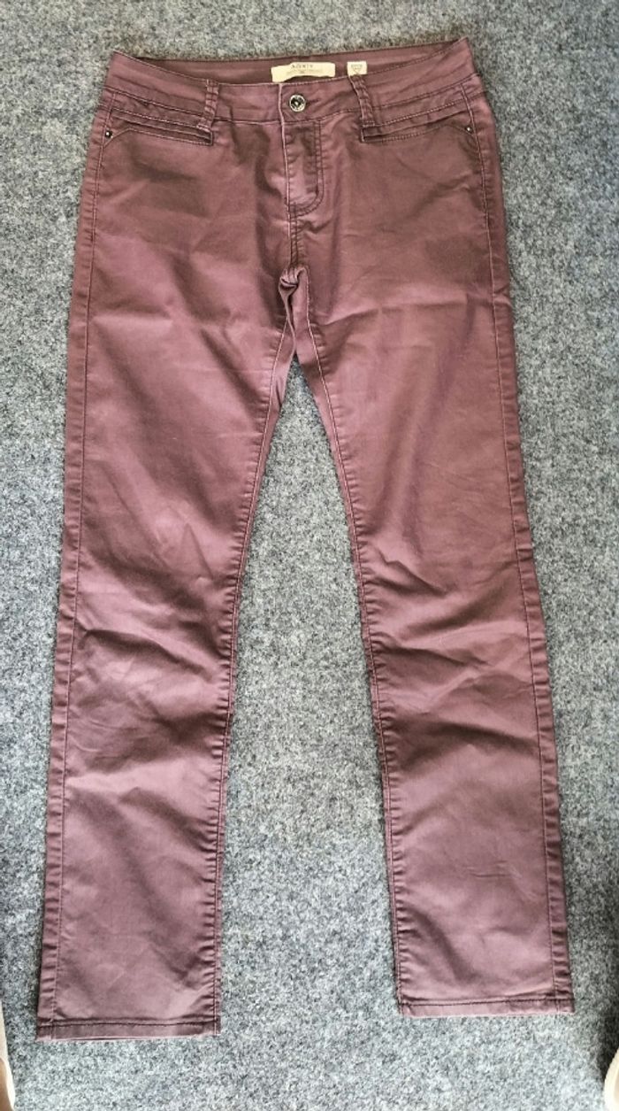 Pantalon coupe droite effet cuir Couleur prune/ violet Taille 38