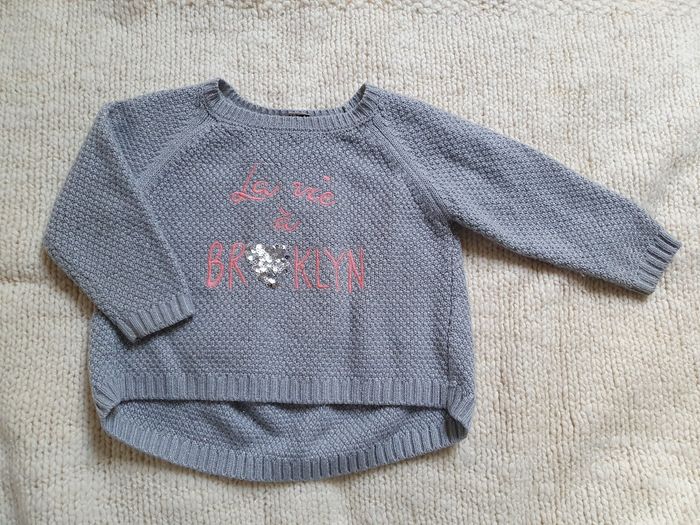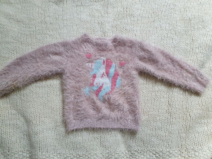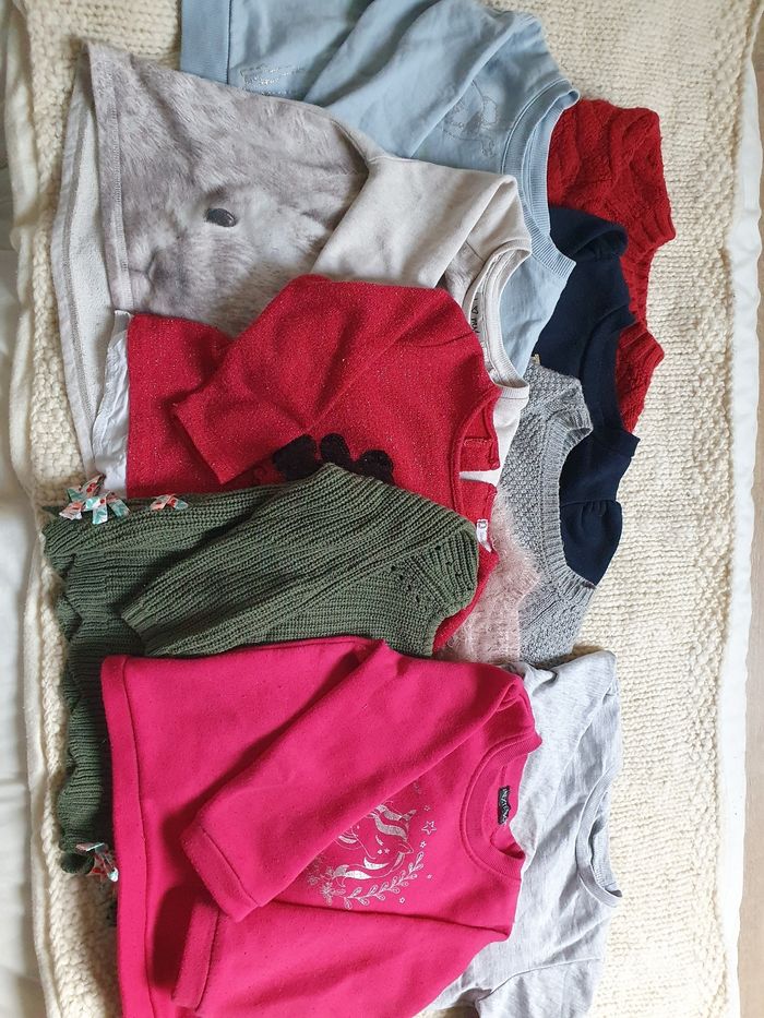 Lot de 10 pulls de taille 3 ans et de différentes marques. Peuvent êtres vendus séparément. Les défauts sont 2 tâches, une sur le pull bleu clair, une sur la manche du pull rose à "poils".