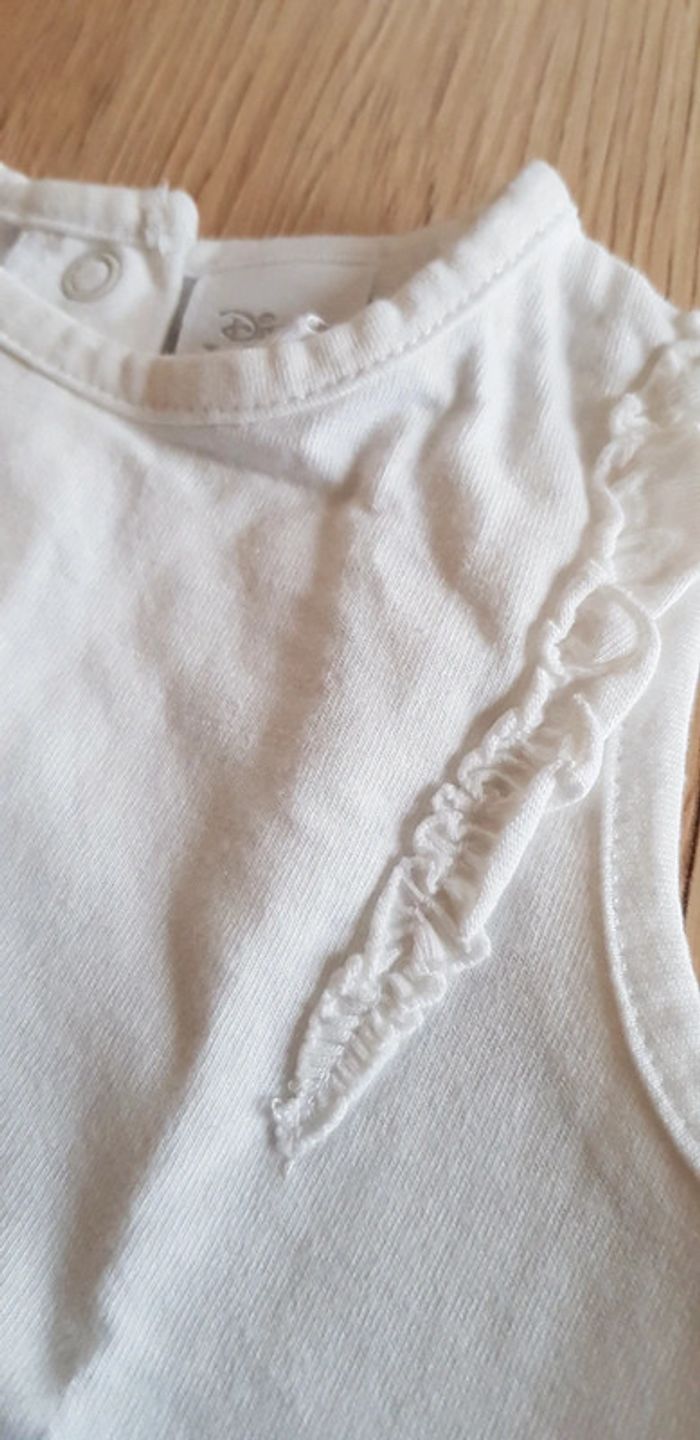 #3mois_F_ltitia8375 Taille 3 mois, porté 1 fois. Tee-shirt débardeur Disney Aloha. Blanc. Ouverture par pressions à l'arrière. #lot #été #disney