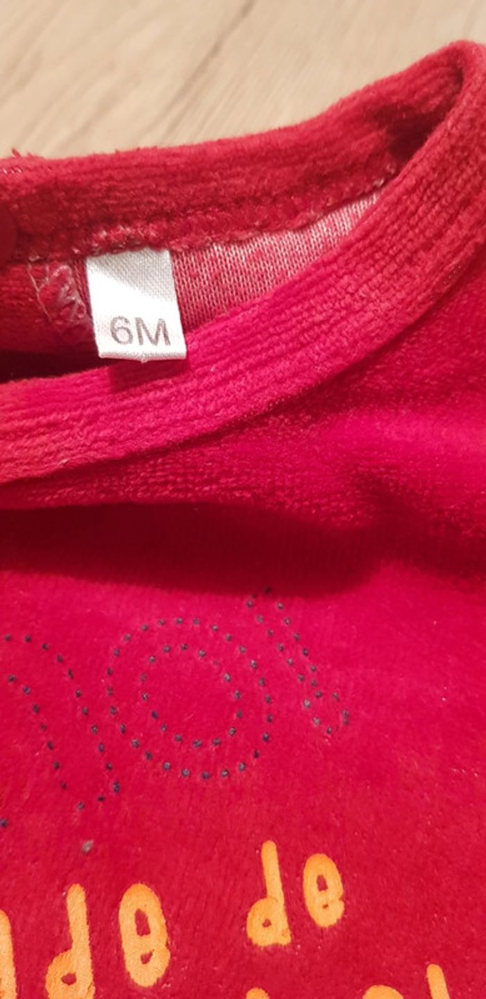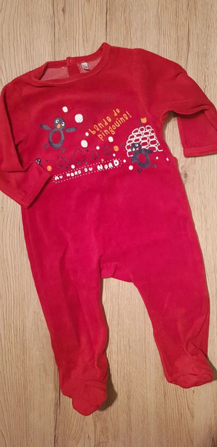 #6mois_G_ltitia8375 #6mois_F_ltitia8375 Taille 6 mois, TBE. Pyjama velour couleur rouge avec petits pingouins.