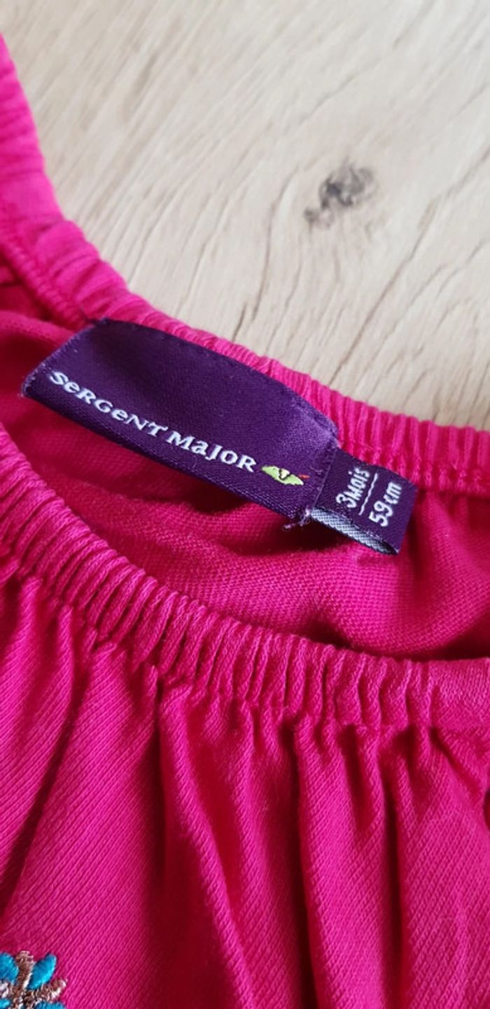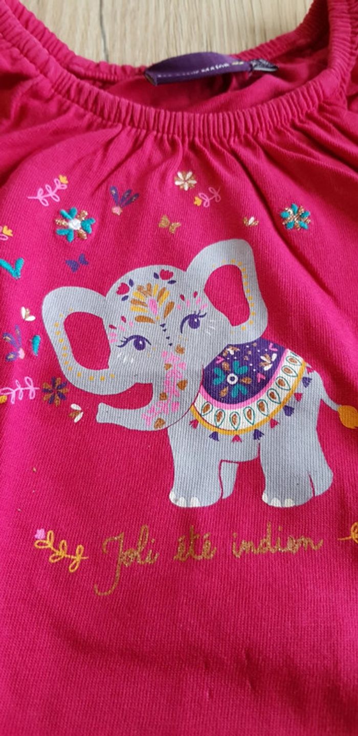 #3mois_F_ltitia8375 Taille 3 mois, TBE peu porté. Rose fuchsia avec éléphant sur le devant.