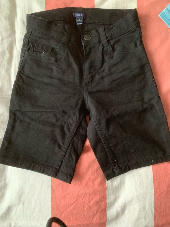 Bermuda noir Kiabi 6 ans Polo bleu tape à l’œil 5 ans
