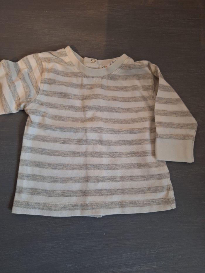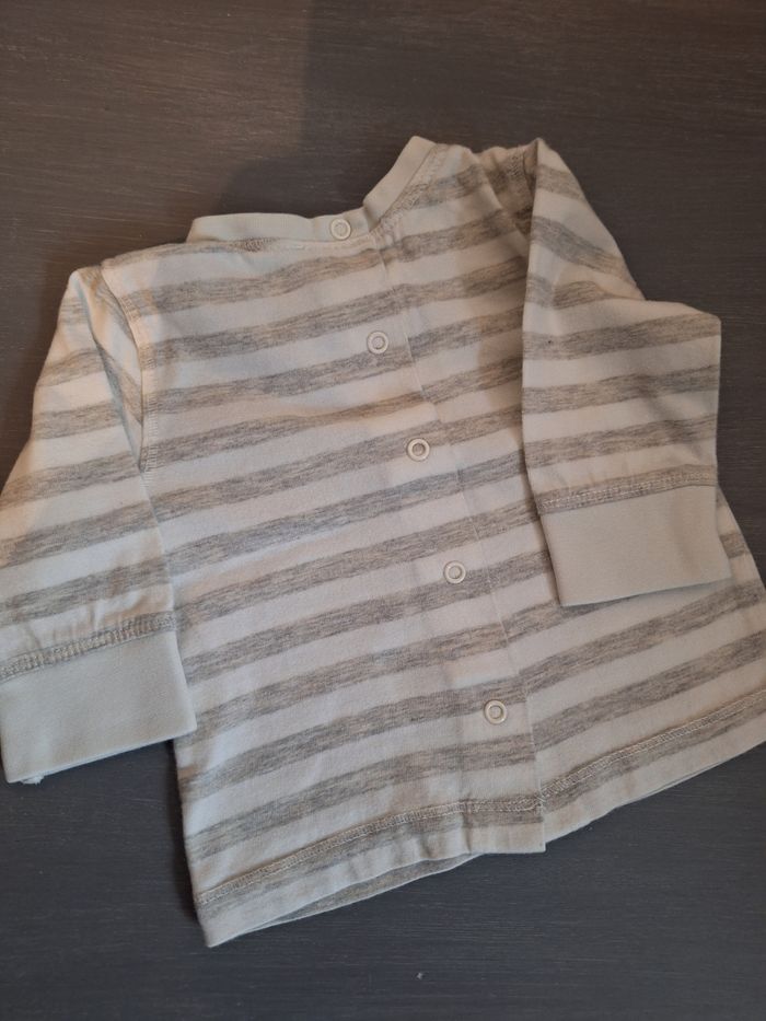 GARÇON 3 MOIS N°381 maillot rayé , ecru gris Pression au dos Taille 3 mois 98% coton 2% viscose Kitchoun 1€ #kelly_garçon3mois