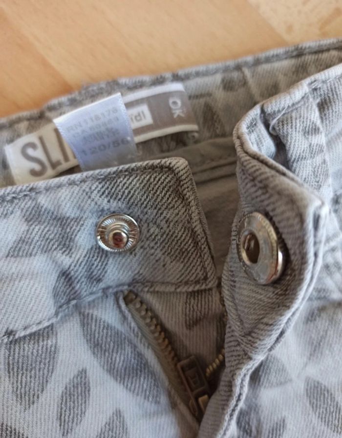 Slim gris fleuri feuillage Okaïdi 7 ans un peu usé sur le devant des genoux pression - photo numéro 5