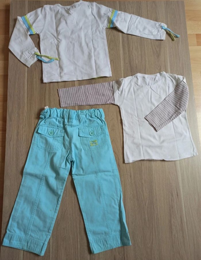 2 t-shirts manches longues un tape à l'oeil un nky et un pantalon bleu tape à l'oeil 4 ans