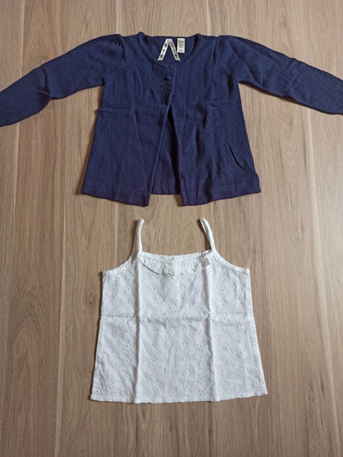 Gilet bleu marine à bouton 4 ans Okaïdi débardeur blanc broderie Vertbaudet 5 ans