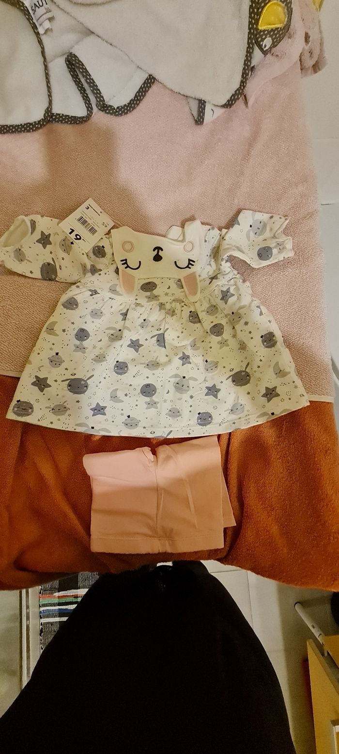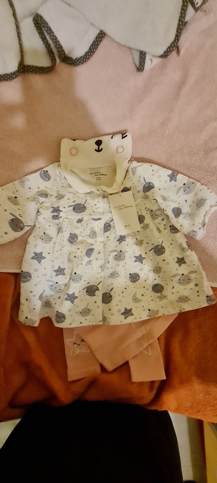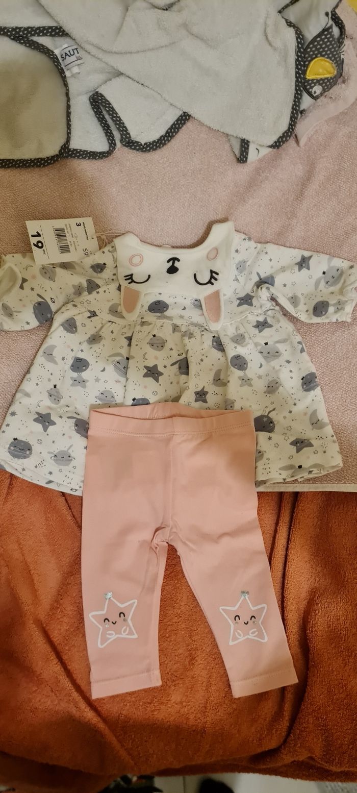 Robe lapin du pareil au même avec leggings rose taille 3 mois neuf
