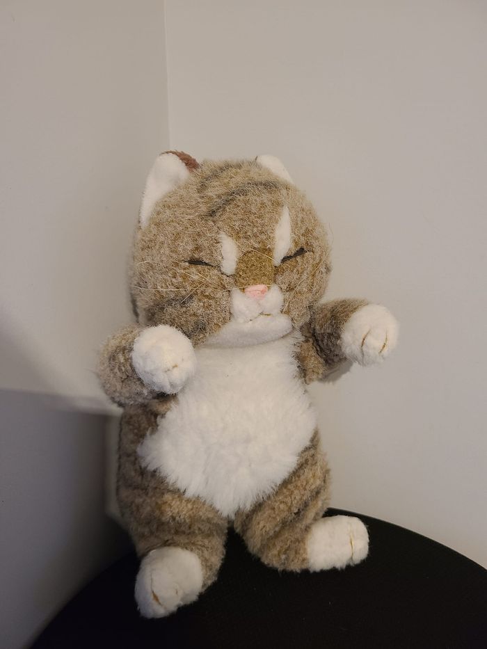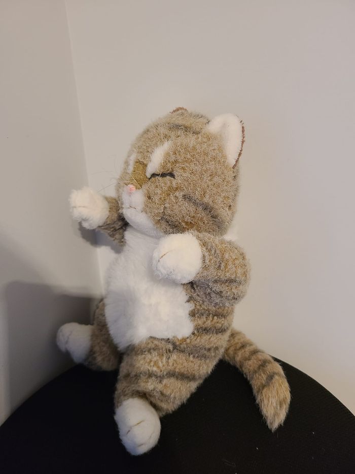 Peluche rare collectionneur vintage SALCO GROUP marron & crème rayée chat 13