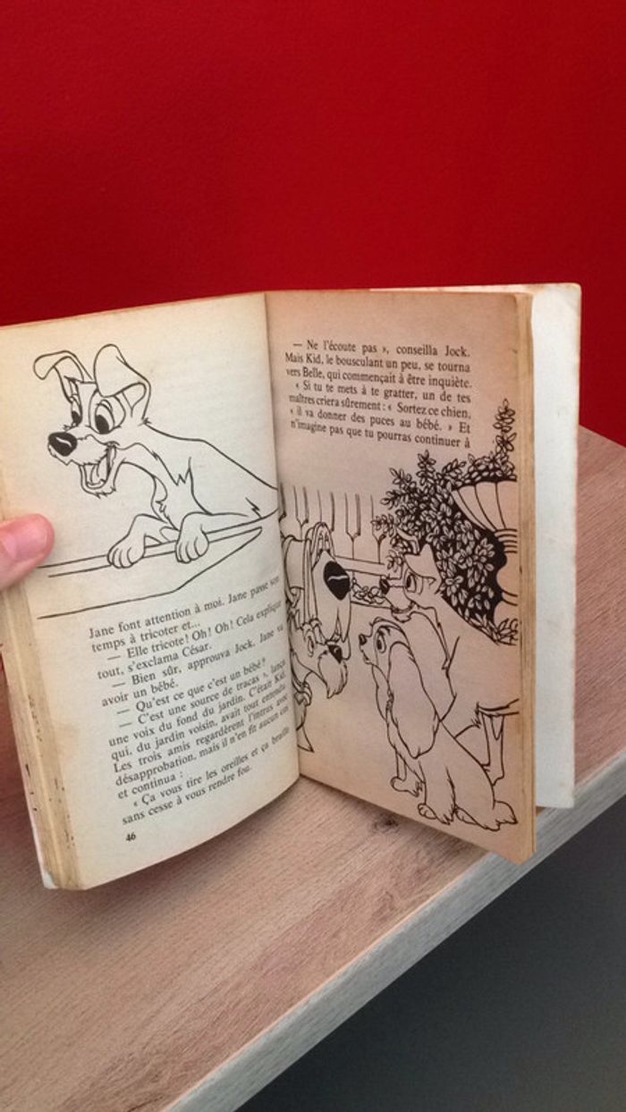 livre de poche Disney la belle et le clochard. livre ancien donc un peu jauni sur les pages et certaines tâches. coins abîmées.