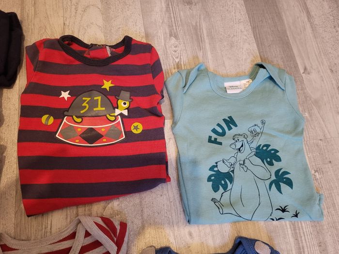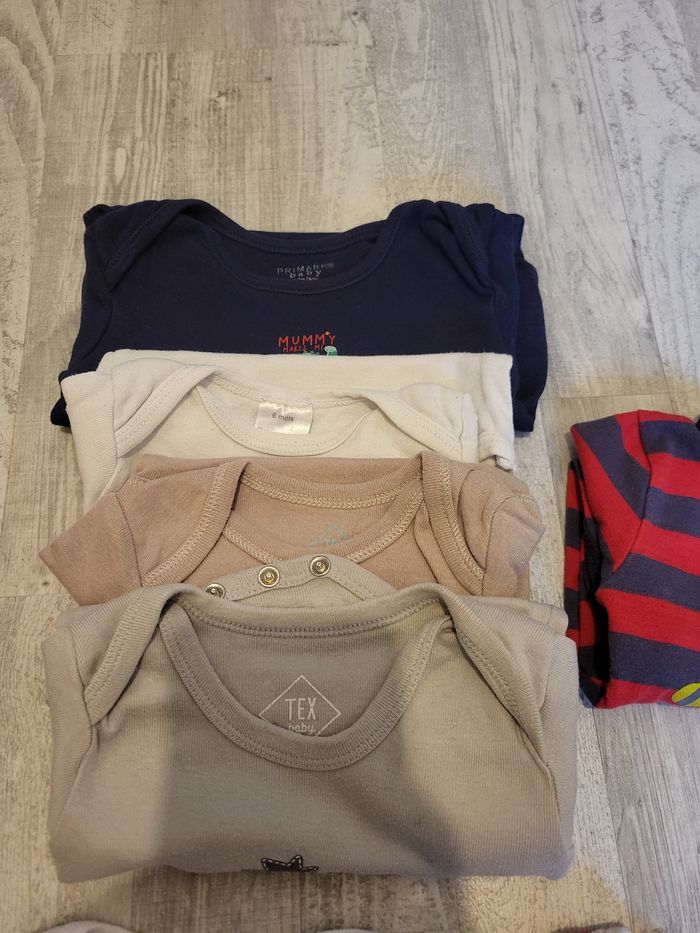Lot de 12 bodies manches longues Taille 6 mois Il y a plusieurs marque comme tex, gémo, disney, petit bateau ...