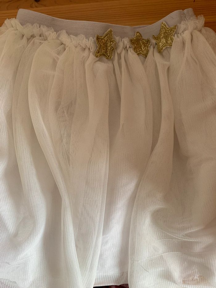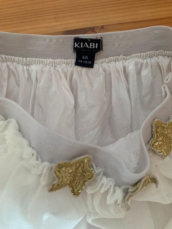 Bonjour, Jupe Kiabi 6 ans, blanche avec étoile à la ceinture. Présente quelques défauts sur le jupon en tulle (cf photo). Réductions lot activées #let971taille6ans #jupe6ans #kiabi6ans #blanc6ans