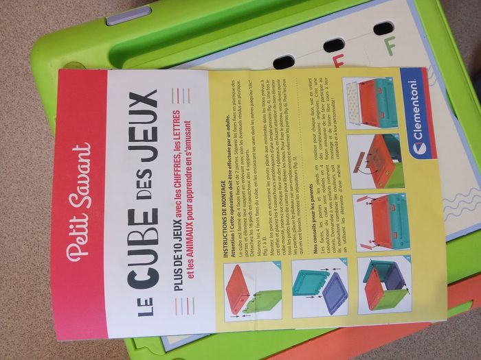 Cube d'activité complet et en excellent état. Idéal pour apprendre à lire écrire et à compter tout en s'amusant. Au tour plus de 10 activités différentes