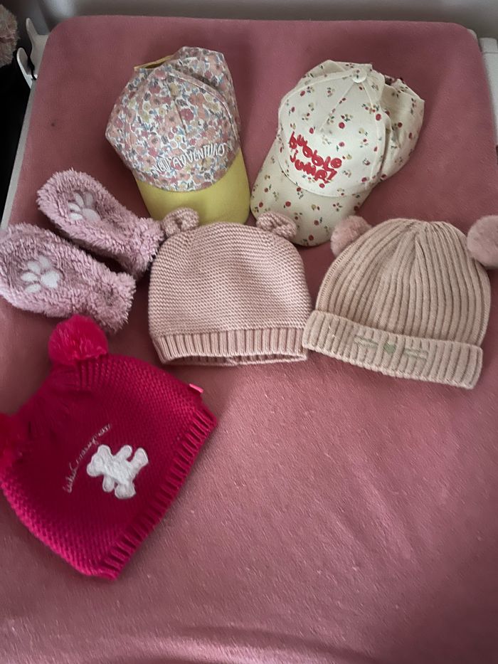 Vend bonnet et deux casquettes fille 10€ les taille vont de 3/6 mois 9/18 mois