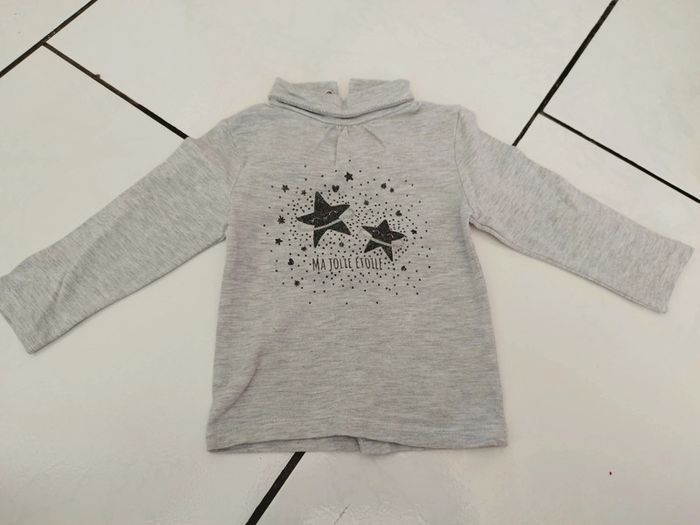 Sous pull tee-shirt à col roulé Motif étoiles et inscription ma petite étoile Taille 6 mois Marque Kiabi Très bon état Maison non fumeur et sans animaux #arnaudmelfille #arnaudmel6moisfille
