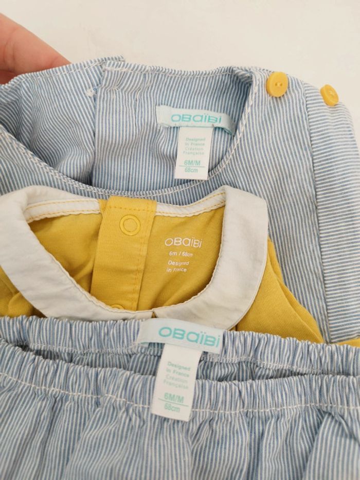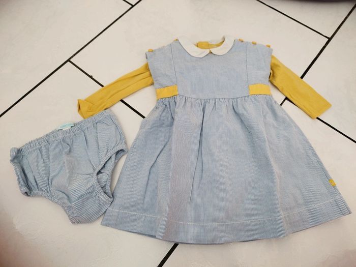 Robe à rayures avec son body et son bloomer assortis Taille 6 mois Marque obaïbi Très bon état Maison non fumeur et sans animaux #arnaudmelfille #arnaudmel6moisfille