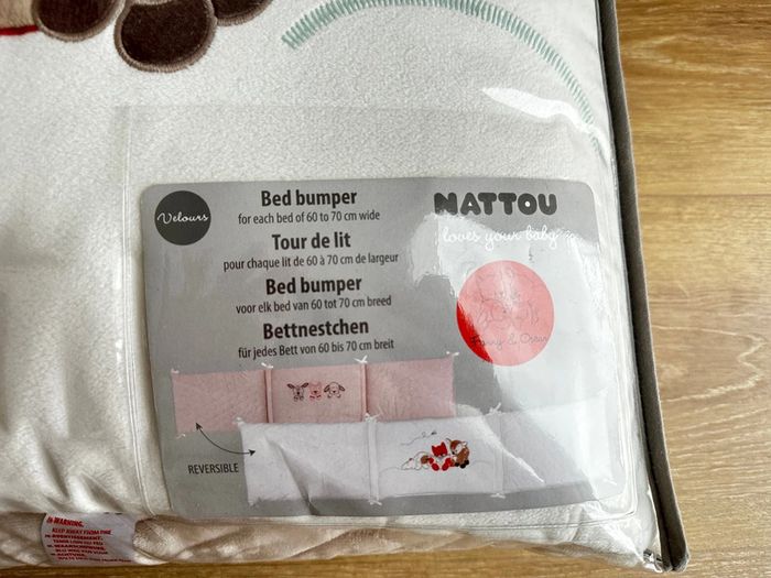 Tour de lit réversible beige nattou dans l’emballage, excellent état.