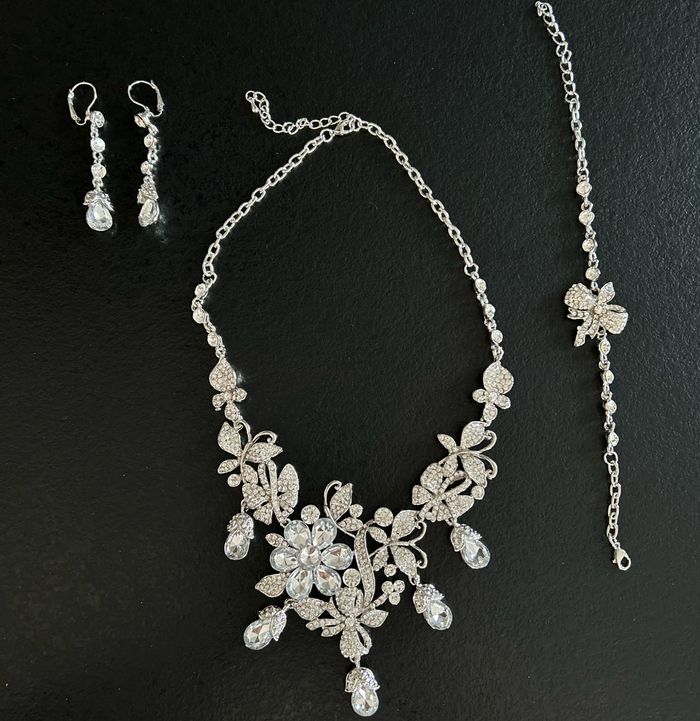 Je vend une parure de bijoux qui comprend 1 colliers 1 paire de boucles d oreilles et 1 bracelet jamais porter encore emballé.
