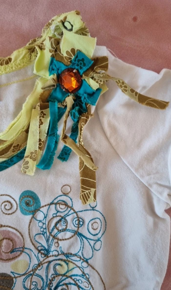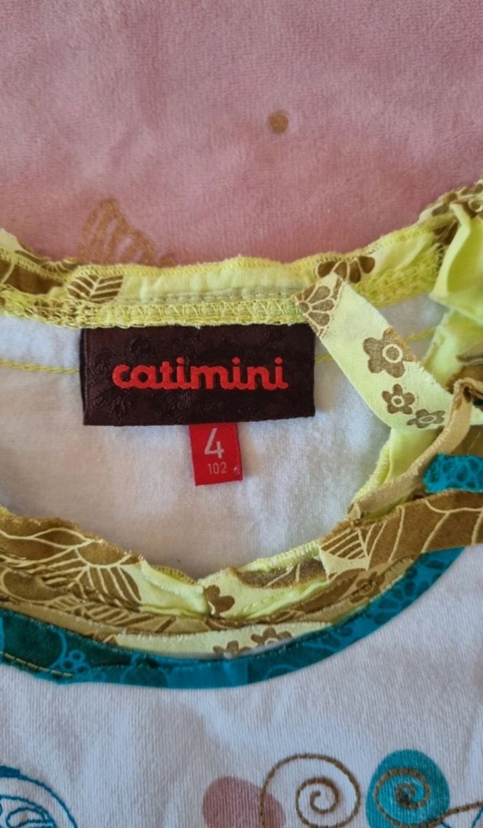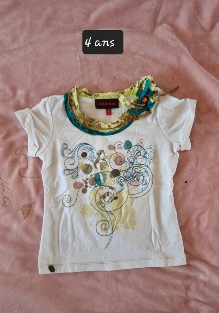 Joli Tee-shirt fille de chez Catimini en taille 4 ans avec sa broche Cousue Souvent porté, petite tâche en bas 94% coton, 6% elasthanne