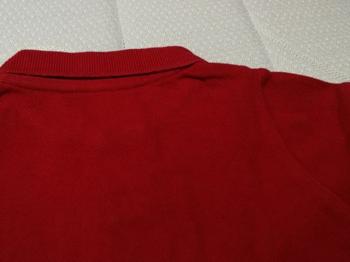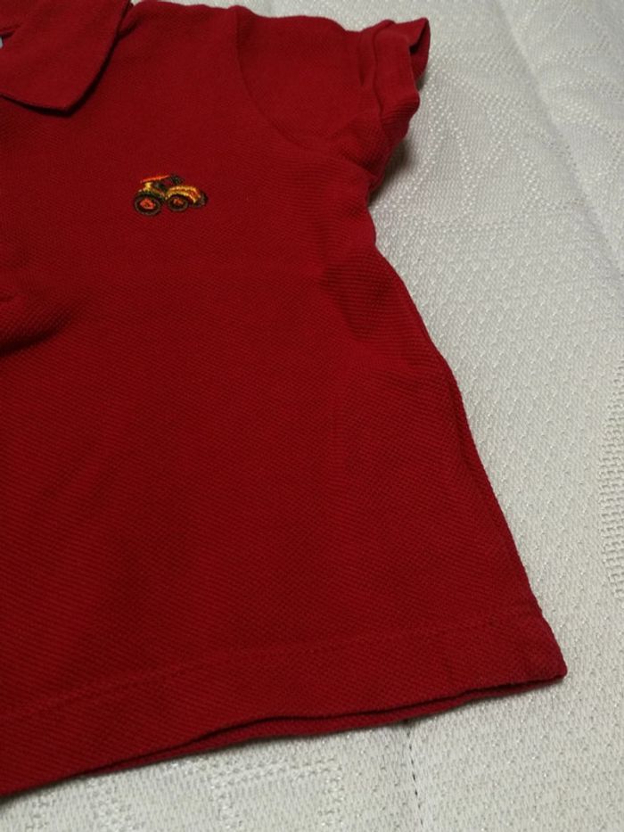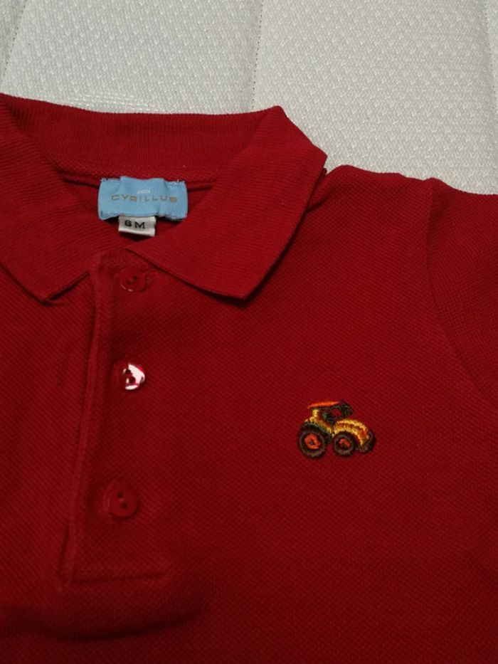 Polo manches courtes, rouge foncé avec logo brodé tracteur, col et 3 boutons, marque Cyrillus 6 mois. Bon état #6moismowglie12 #6moisgarconmowglie12
