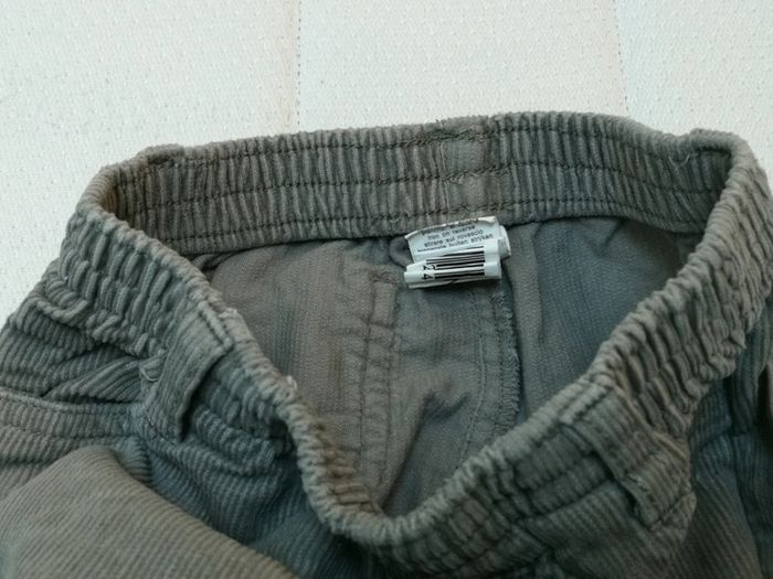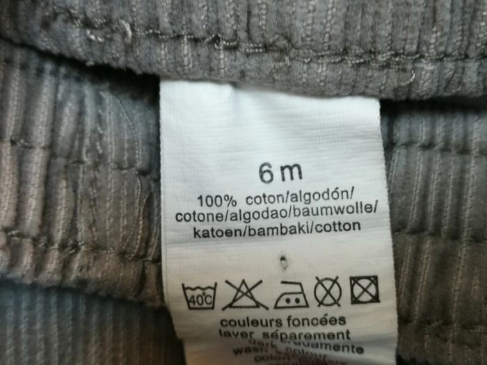 Pantalon gris velours avec 2 poches devant et 1 à l'arrière, 6 mois. Bon état #6moismowglie12 #6moisfillemowglie12 #6moisgarconmowglie12