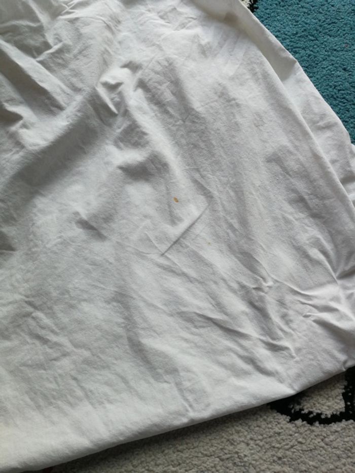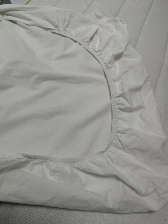 Draps housse blanc, utilisé par pour matelas 60 x 120 cm. Élastiques au niveau des coins en bon état. Etat satisfaisant, des petites taches, cf photo. #accessoirebébémowglie12