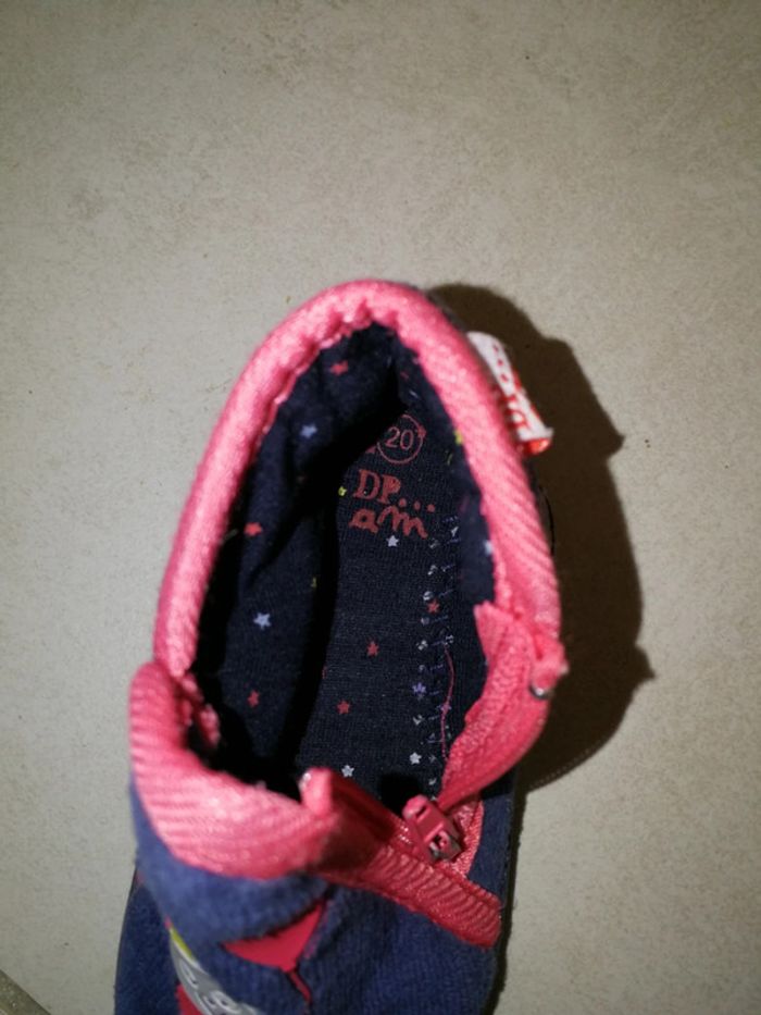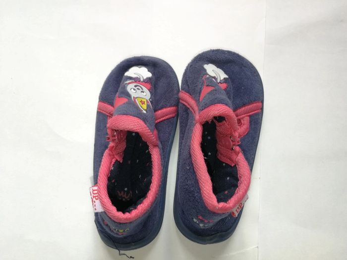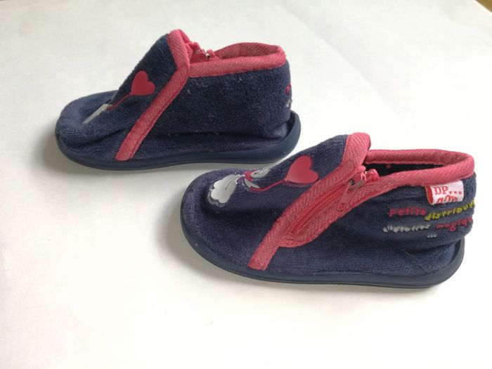 Chaussons bleu et rose avec lapin, fermeture eclair, taille 20, marque du pareil au meme. Etat satisfaisant, usé au talon et sur le bout. Cf photos. #chaussurefillemowglie12