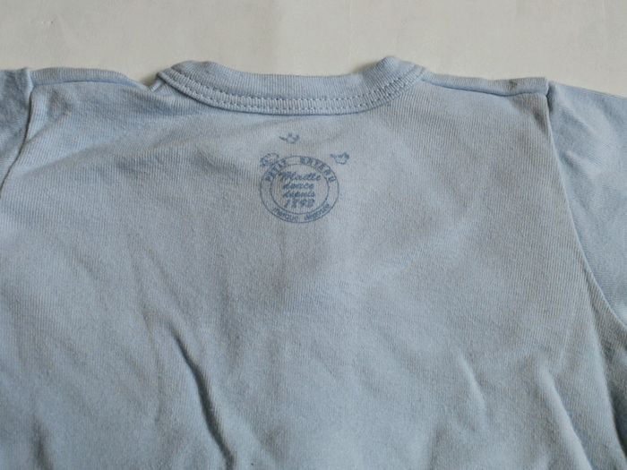 Pyjama en coton, bleu ciel. Ouverture devant. Porté et un peu usé, cf photos #3moismowglie12 #3moisgarconmowglie12