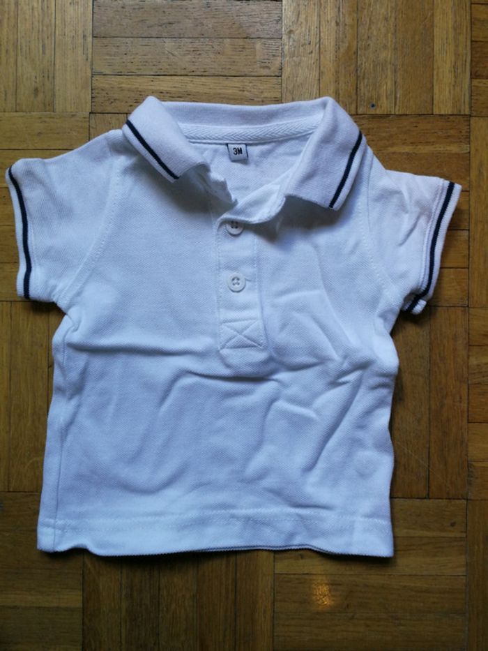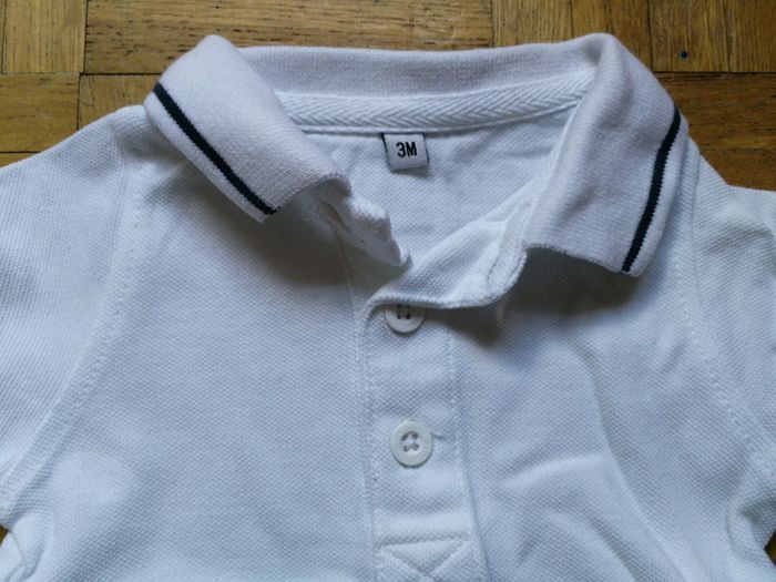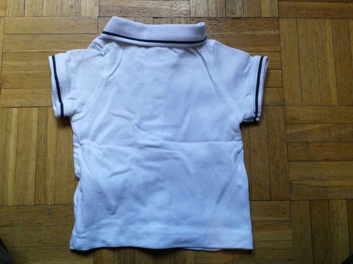 Polo blanc avec trait noir sur les manches courtes et le col. Très peu porté #3moismowglie12 #3moisgarconmowglie12