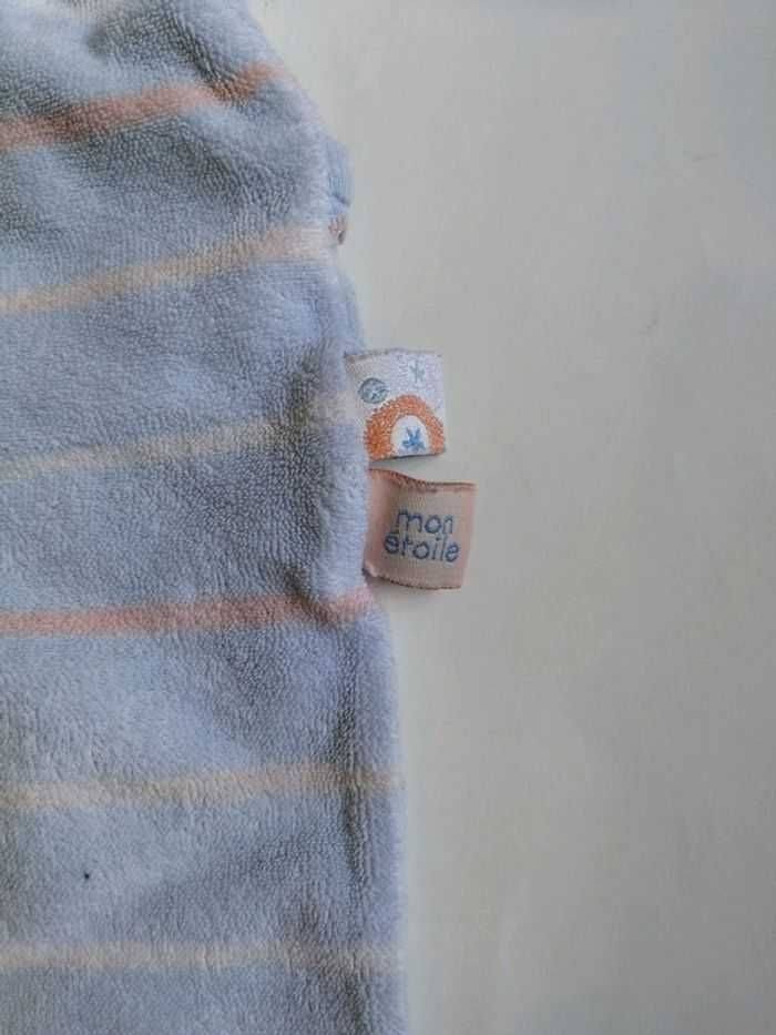 Pyjama bleu rayé blanc et rose/orange. 60 cm. Ancien petit bateau (matière plutot serviette et non velours). #3moismowglie12 #3moisgarconmowglie12
