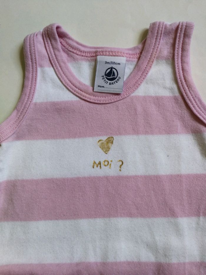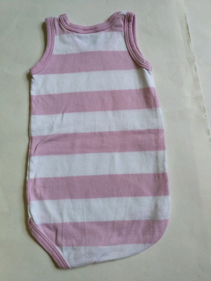 Body rayé rose et blanc sans manche, 60 cm. #3moismowglie12 #3moisfillemowglie12