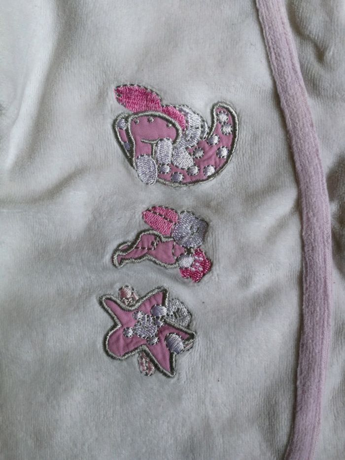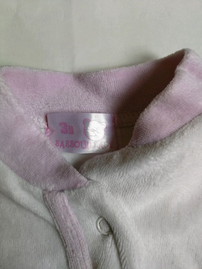 Pyjama velours rose et blanc, bougli bougla. Un peu jauni sur la manche. #3moismowglie12 #3moisfillemowglie12