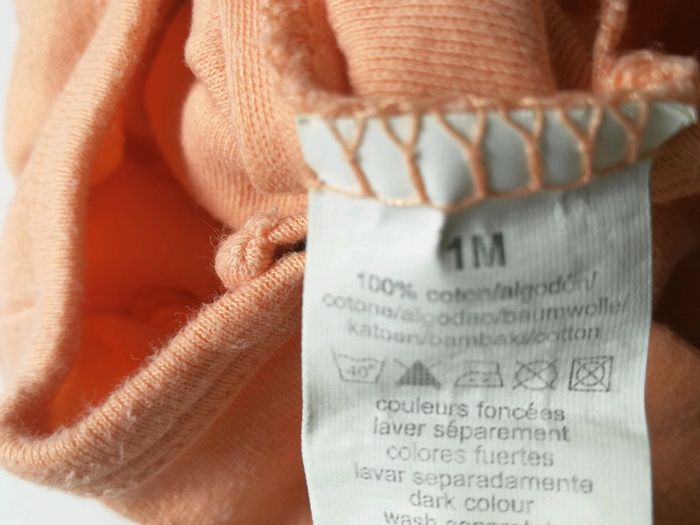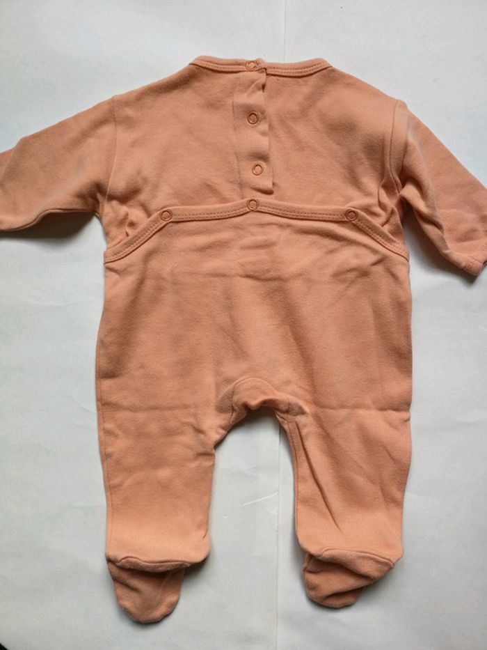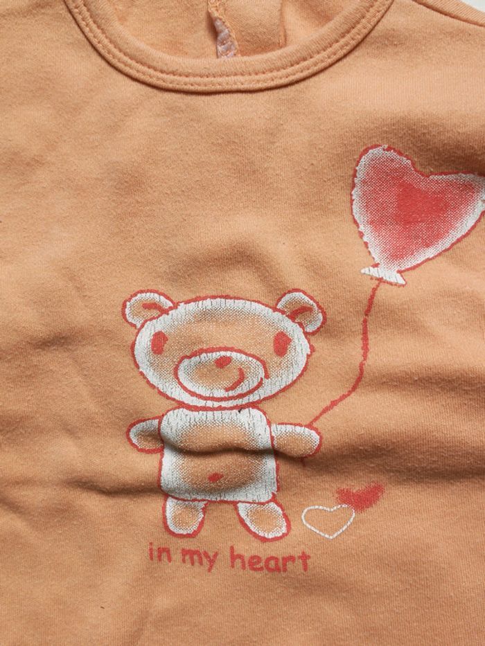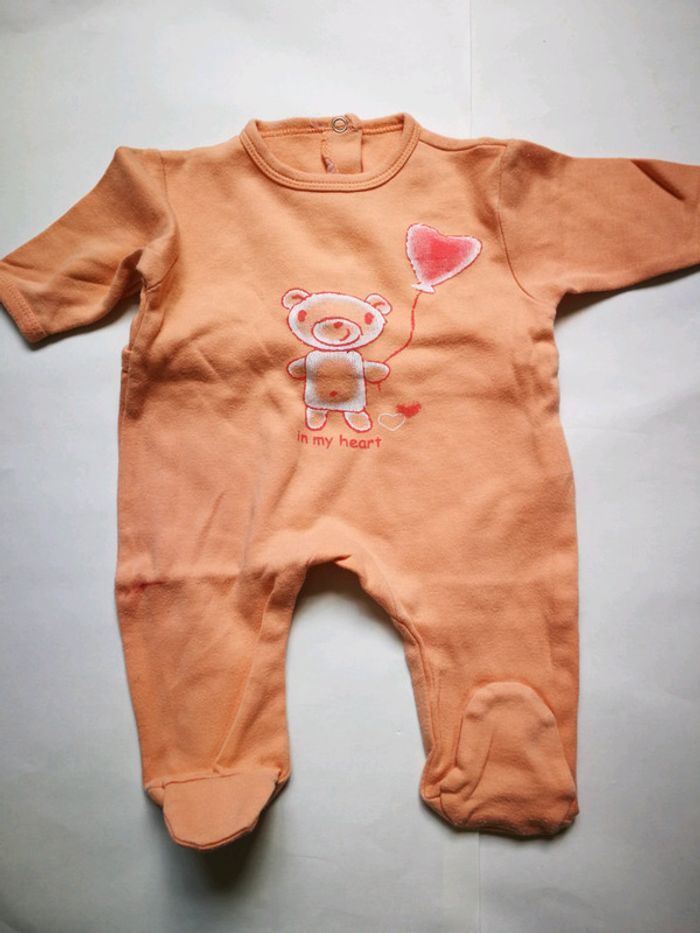 Pyjama fin pour l'été. Orange avec ourson et ballon en forme de coeur "in my heart" #1moismowglie12 #1moisfillemowglie12