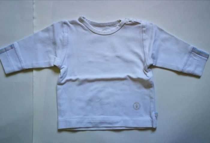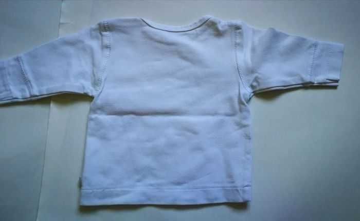 Tshirt manches longues, blanc avec un ruban sur les manches. Tissu epais. 1 mois obaidi. Mixte peut convenir à une fille ou un garçon. #1moismowglie12 #1moisgarconmowglie12 #1moisfillemowglie12