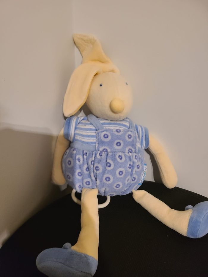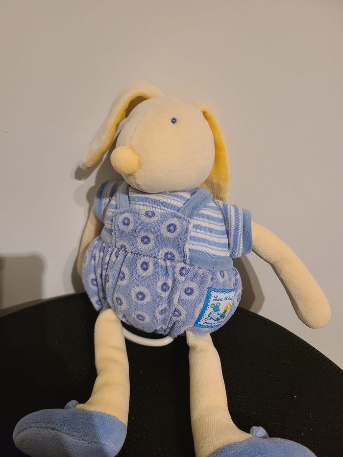 Doudou Musical LAPIN Bleu Jaune - MOULIN ROTY - Lise Et Lulu - H 30 Cm