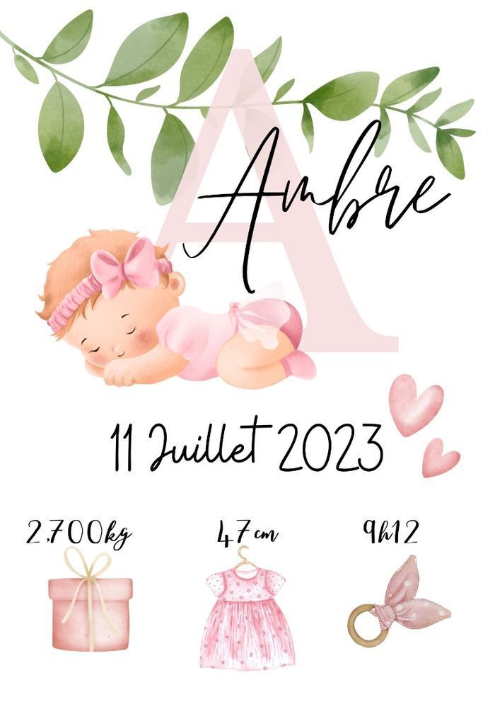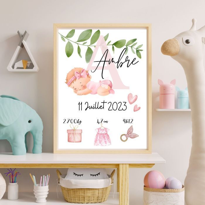 Idéale pour accrocher dans la chambre de bébé, ou comme cadeau de naissance ! ・Impression sur du papier 250g en format A4 (21x29.7cm) Une fois votre commande passé envoyer moi les détails par message Merci d’écrire précisément le prénom, la date, la taille, le poids et l’heure de naissance. ⚠ Aucune modification ne pourra être faite après l'impression Les couleurs peuvent être légèrement différentes du rendu photo. ©JgcreationsFR- tous droits réservés.