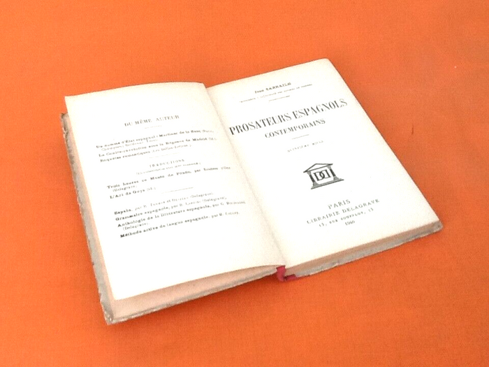 Jean Sarrailh Prosateurs Espagnols Contemporains (1940) 238 pages Paris Librairie Delagrave (180x115x18)mm