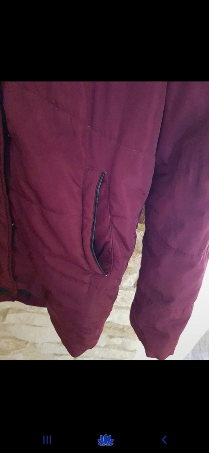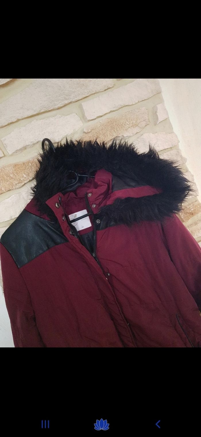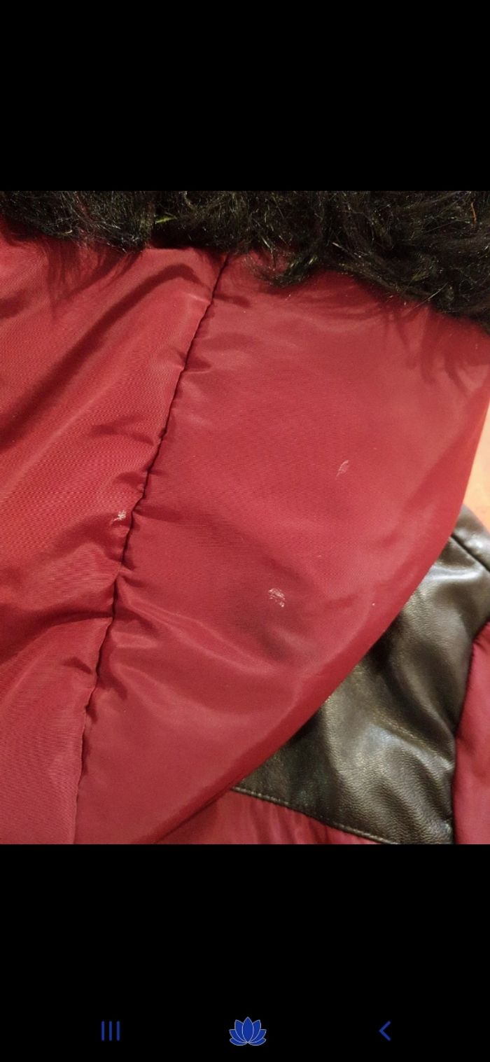 Doudoune à capuche avec fausse fourrure. Deux poches à l avant. Longueur de 80 cm environ. Petits défauts sur la capuche ( voir photo)