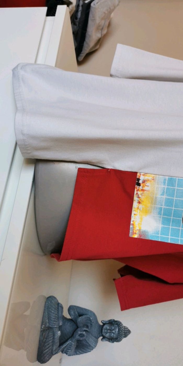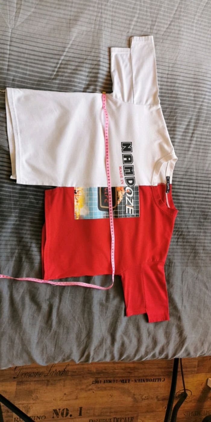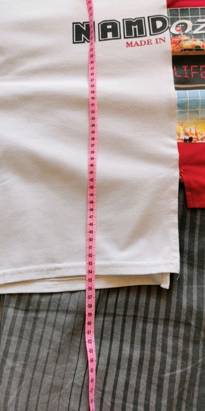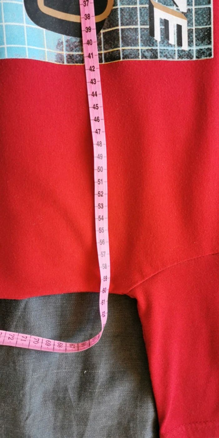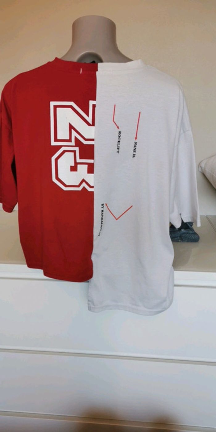 En bon état: bouloche légèrement Tshirt loose asymétrique Mesures sur les photos Taille unique Rouge et blanc