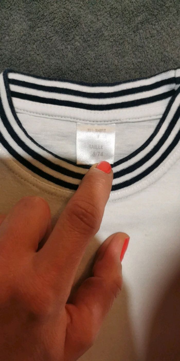 En très bon état Tshirt blanc col marin Taille 68/72cm 100%coton #garcon6moisanna77390 #garcon9moisanna77390