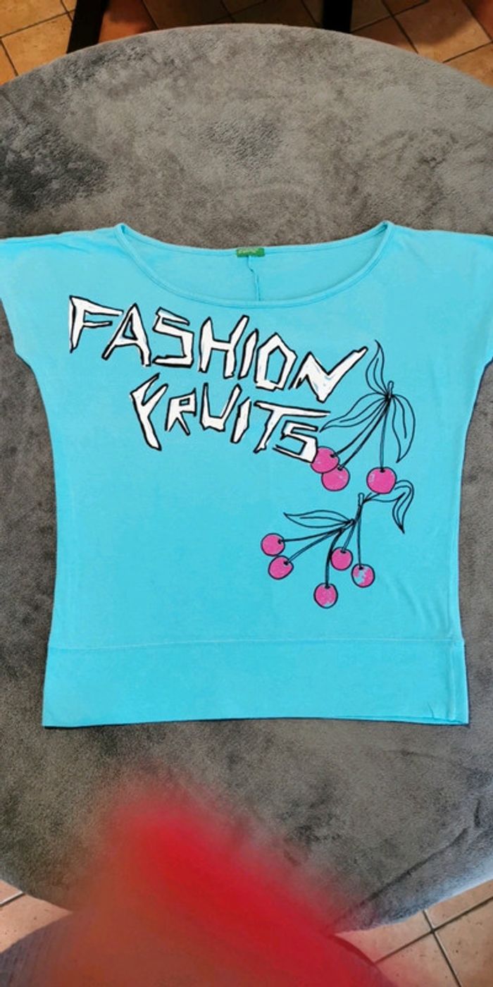 T-shirt Benetton turquoise - photo numéro 1