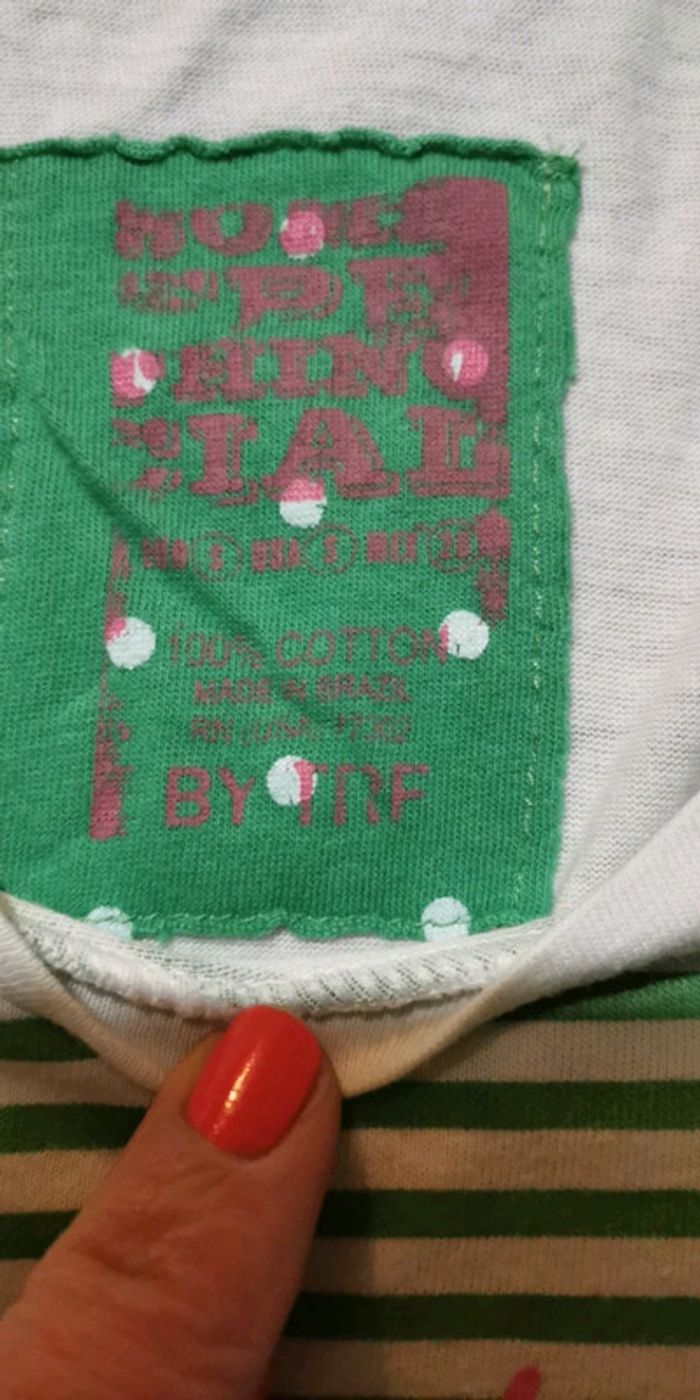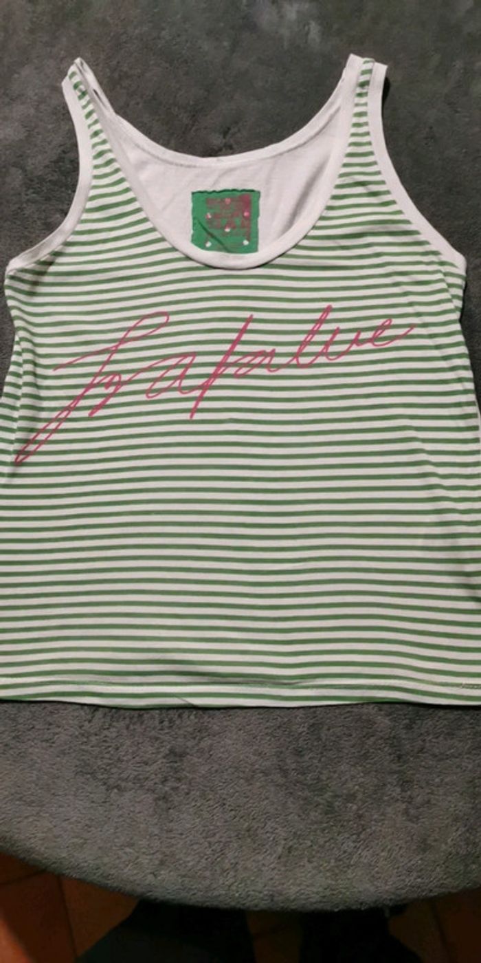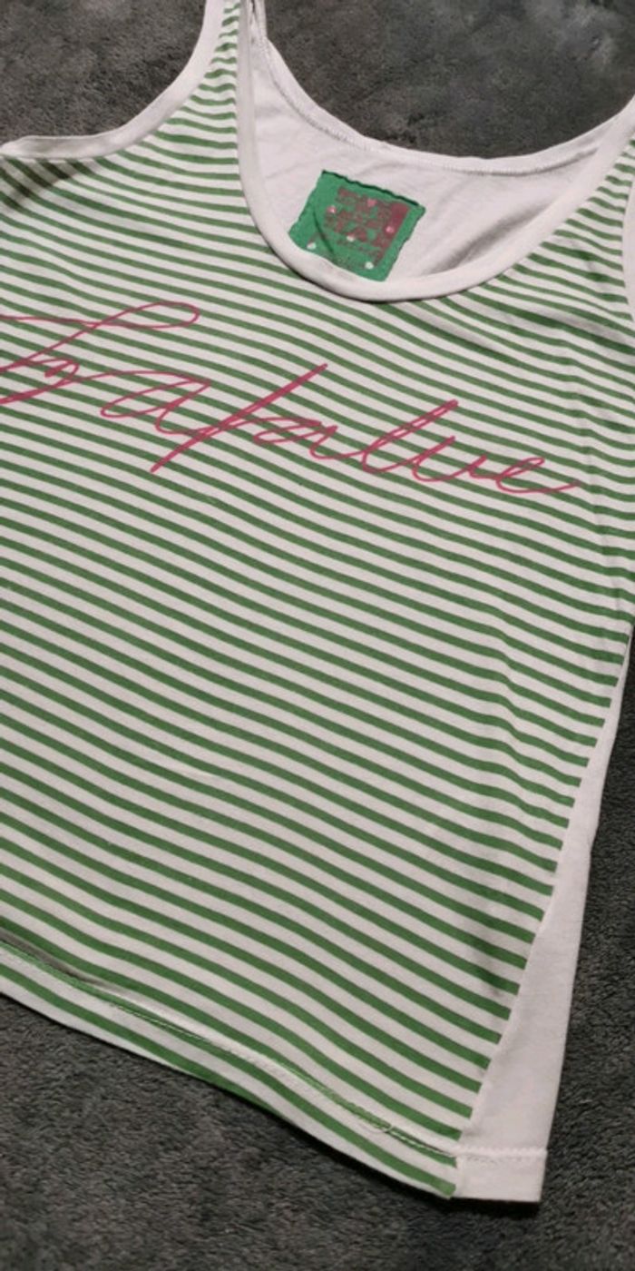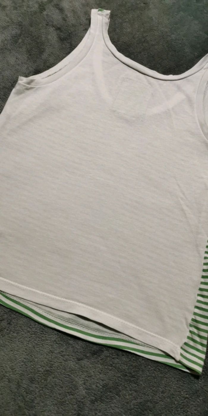 Débardeur en bon état Blanc rayé vert Taille S 100%coton🌍