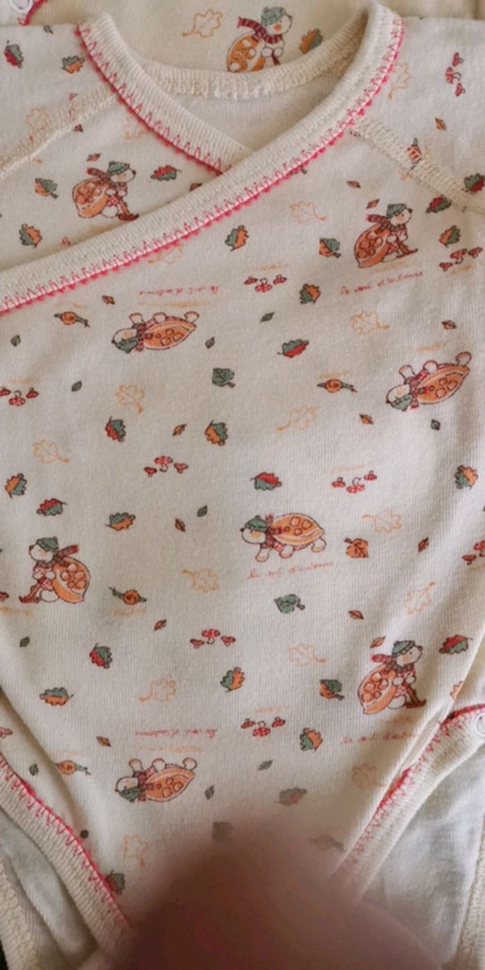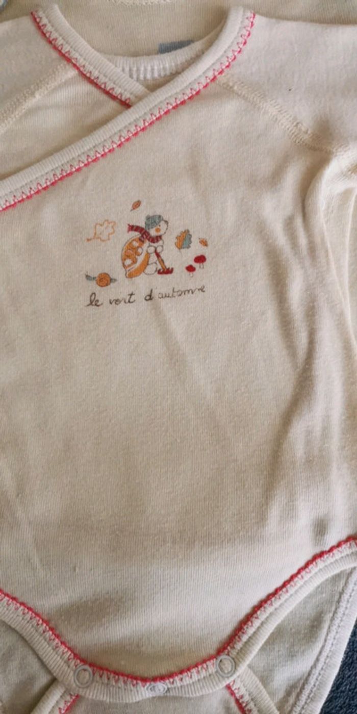 En très bon état, lot de 3 bodies sur le thème de la saison " Le vent d'automne" 2 à manches longues, ouverture sur le devant et le dernier à manches courtes. Couleur jaune pastel #garconnaissanceanna77390