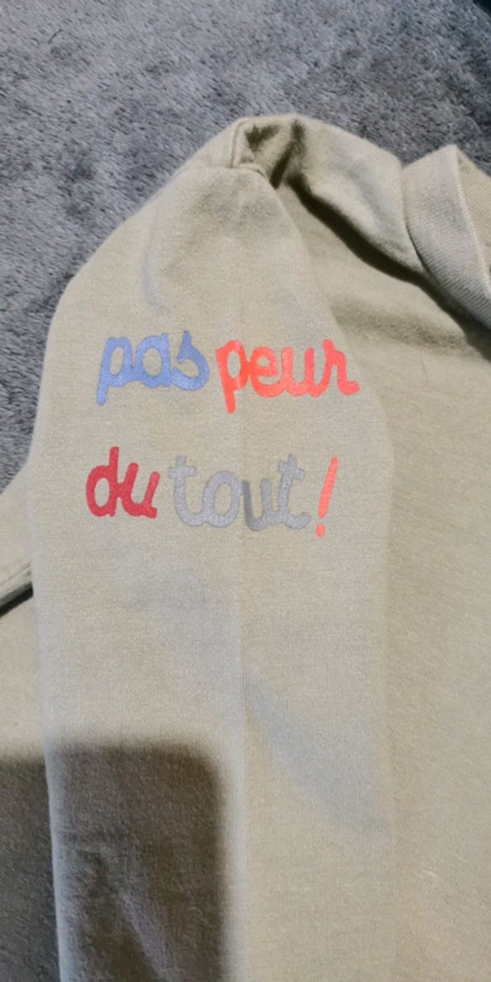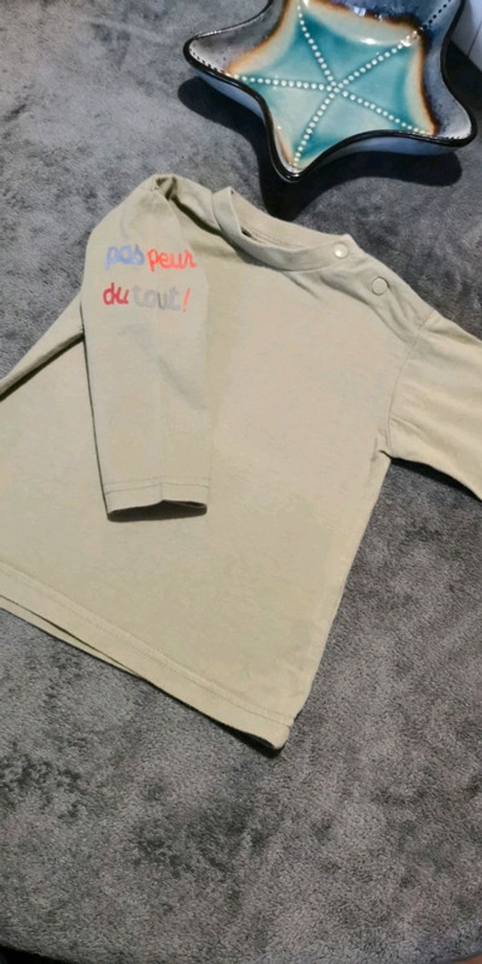 En bon état Tshirt manches longues avec inscription sur la manche"pas peur du tout" Boutons pression au col Couleur vert kaki Taille 1 an/74cm 100%coton🌍 #garcon12moisanna77390