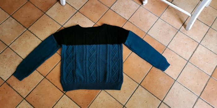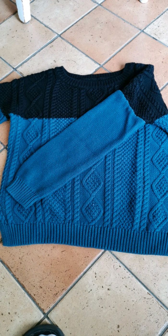 Joli pull bien chaud en très bon état Laine bleu turquoise et noire Taille 34/36 #femme36anna77390 #pullfemmeanna77390
