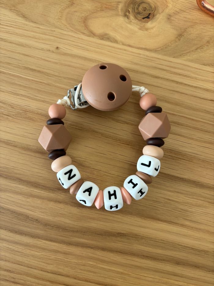 Attache-tétine personnalisé en silicone Matière première certifiée conforme à la norme EN71-3:2019 Ma création est conforme aux exigences de sécurité, c’est pourquoi l’article peut subir de légères modifications en fonction du nombre de lettres du prénom demandé ou si vous désirez un adaptateur MAM. Majoration de 1€ (Longueur maximale 22cm). Une photo vous sera transmise pour validation avant envoi de la commande. D’autres couleurs disponibles sur demande par message privé. Des précautions d’usages ainsi qu’un mode d’emploi vous seront remis.