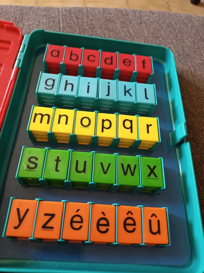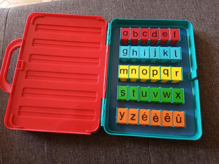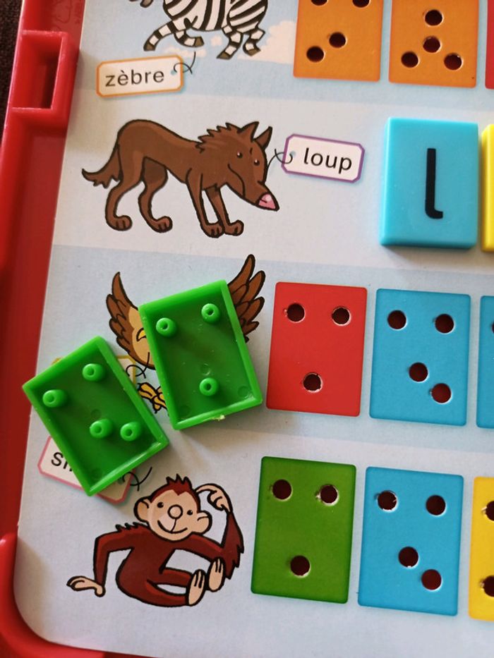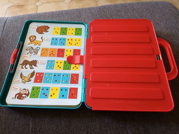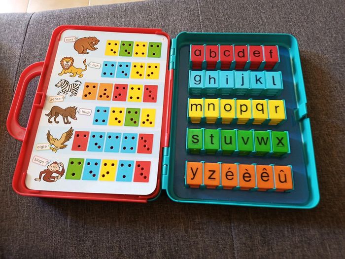 Jeu de société J'apprends à lire JEU COMPLET. Avec J'apprends à lire, l'enfant démarre son apprentissage de la lecture en composant des mots à l'aide des 90 jetons lettres. Sur chacune des 15 planches, l'enfant lit l'étiquette lui indiquant le nom des 5 illustrations. À lui d'écrire ces mots. C'est ludique, la difficulté est progressive, le jeu auto correctif et la mallette permet d'emporter facilement J'apprends à lire. Réf. 319650 Caractéristiques techniques : Contient 1 mallette, 15 planches avec 6 mots, 90 jetons lettres. Dim. : H 26 x L 31.7 x l 6 cm. ❌⚠️ Attention pour un envoi par la poste merci de me contacter avant l achat ❌⚠️ #pitch13011_jouets #pitch13011_mondressing