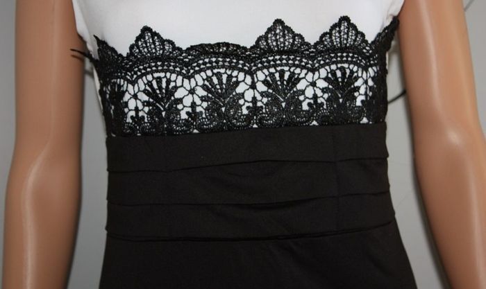 Robe crayon bicolore /M Très jolie robe cintrée avec la partie haute, blanche et le bas noir Séparation des 2 couleurs par de la dentelle blanche Matière : polyester Taille : M #femmemrose64121